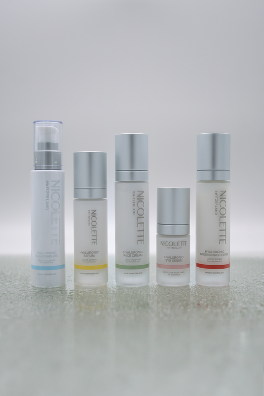 NICOLETTE verbindet Wissenschaft und Natur, um Ihnen eine luxuriöse Hautpflege zu bieten, die wirksam, natürlich und nachhaltig ist. Unsere Produkte werden in der Schweiz hergestellt und enthalten ausschliesslich hochwertige Wirkstoffe, die Ihre Haut zum Strahlen bringen!