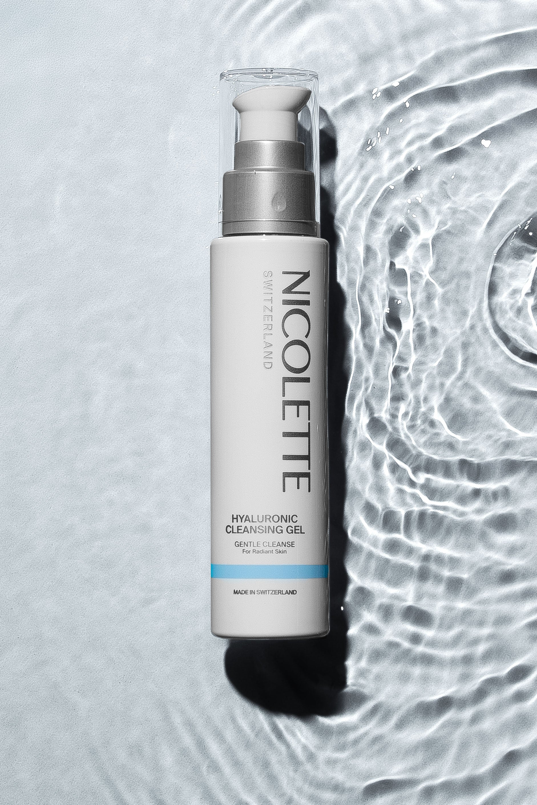 The NICOLETTE Hyaluronic Cleansing gel , thanks to a unique hyaluronic acid of the latest generation with « No Rinse - Off Effect » , the used hyaluronic acid n-modification remains proven on the skin even after rinsing. So you will not receive only a refreshing cleansing, but also one targeted skin moisturizing.