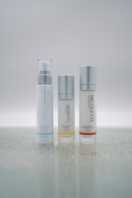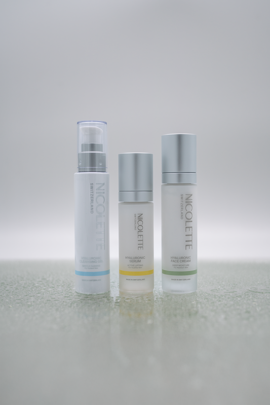 The selection and combination of our ingredients is based on scientific findings and benefits. That is why we use scientifically tested ingredients in all our NICOLETTE products as well as innovative formulations. The various hyaluronic acids used in our products are from the latest development and have product-specific effects. Depending on the product and the needs of your skin, the hyaluronic acid modification used can achieve moisturizing, smoothing, firming or many other effects.